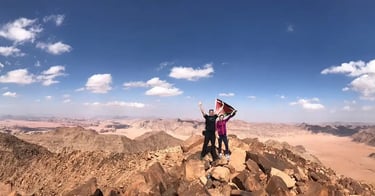 This is one of the most spectacular hikes in the Wadi Rum desert. It takes about 3h and is suitable for everybody who enjoys climbing and scrambling at an intermediate level without too much experience needed. The hike passes through narrow canyons, you can enjoy beautiful views on the way up, there are parts where you have to use your hand, as well as parts for normal walking in between. It is an adventure not to be missed and certainly an unforgettable experience for everybody.
